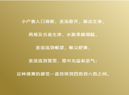 金黄通透的茶汤,又(yòu)似佳人回眸一笑,勾魂夺魄的温婉。